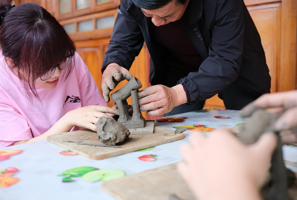 非遗技艺探索之旅。支教团成员跟着寸氏银器制作的第六代传人寸发标先生学习鹤庆银器锻制技艺、向省级非遗代表传承人杨文焕女士请教甸南刺绣、向省级非遗代表传承人郜金福先生学习泥塑瓦猫的制作,他们被一件件精雕细琢的成品所震撼,更为非遗传承人的多年坚守所感动。他们在文化的寻根之旅中,坚定文化自信,争做中华优秀传统文化的忠实传承者,让古老的技艺在新时代绽放出新的光彩。